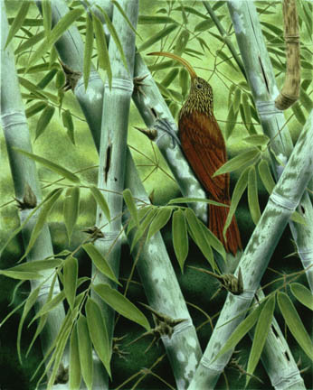 Red-billed Scythebill in Guadua bamboo